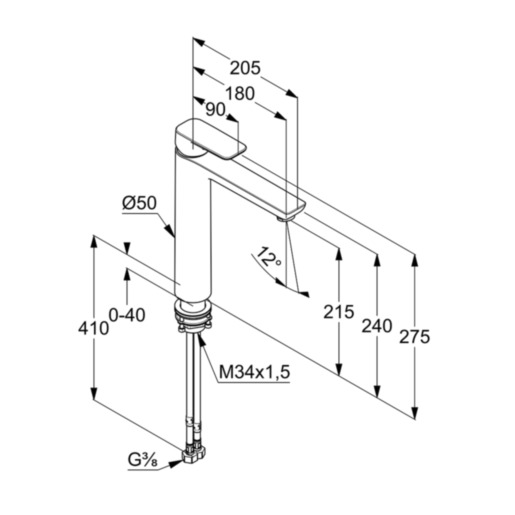 KLUDI-PURE&STYLE mosdócsap mosdótálhoz egylyukas szerelési mód, teli fogantyús