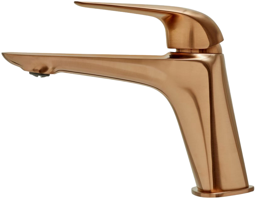 Háromszög formájú mosdó csaptelep, modern kialakítással, PVD bevonatú tüzes bronz színnel.