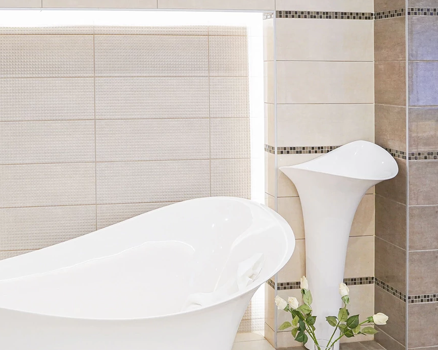 Canvas termékcsalád játékos mozaik csempéje feldobja a letisztult minimalista teret.