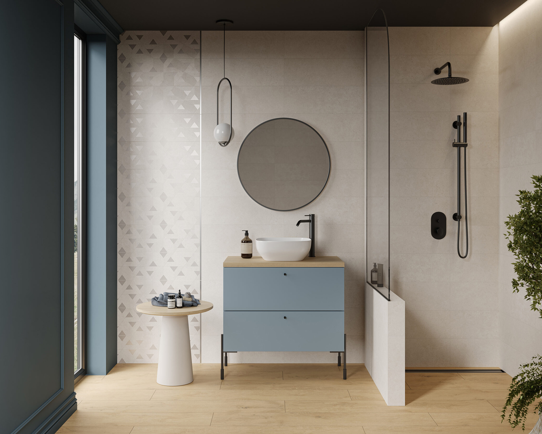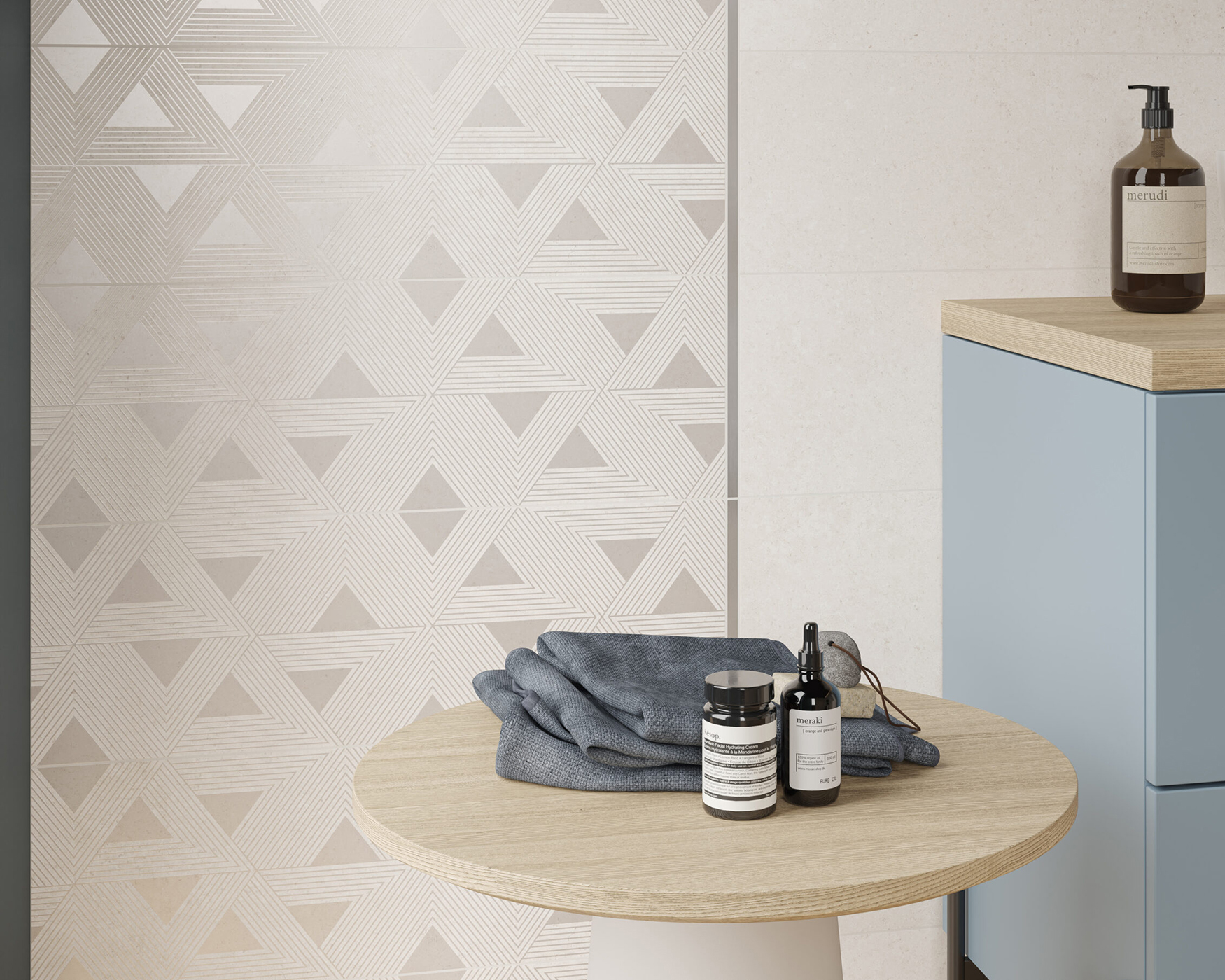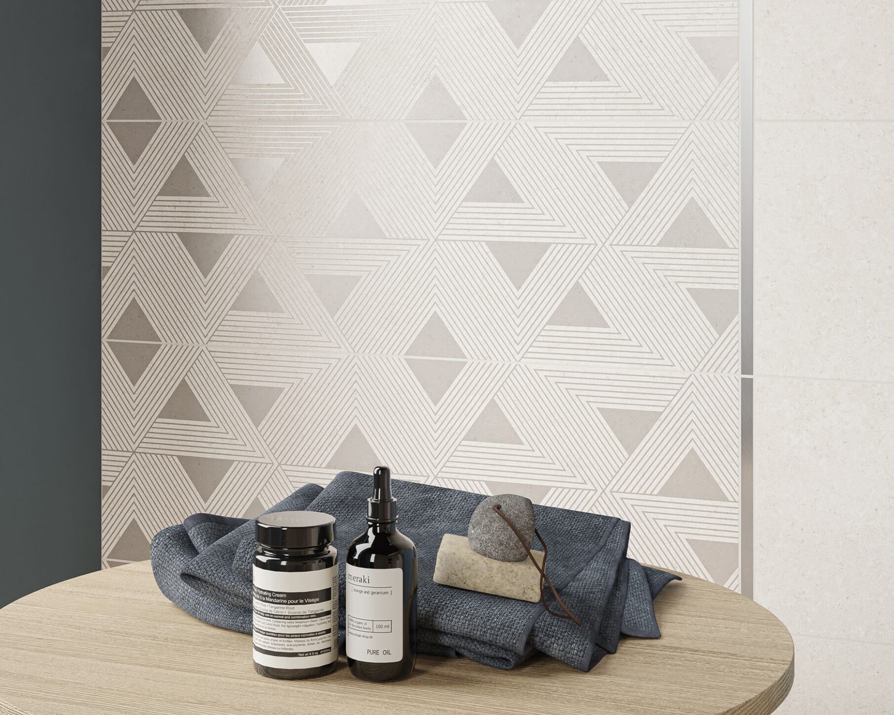 ami minimalizálja a karbantartás szükségességét és javítja az összhatást. A “Fernetti Stone Geometric Shine Cream Matt” csempe ideális választás lehet,