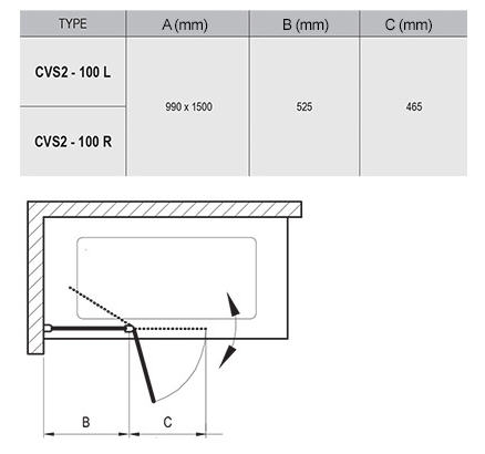 Ravak CVS2-100 jobbos, krómhatású+transparent kádparaván