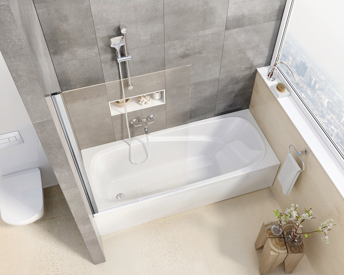 A keret nélküli Transparent üveg és a függőleges profil lehetővé teszik a kádparaván egyszerű tisztítását.