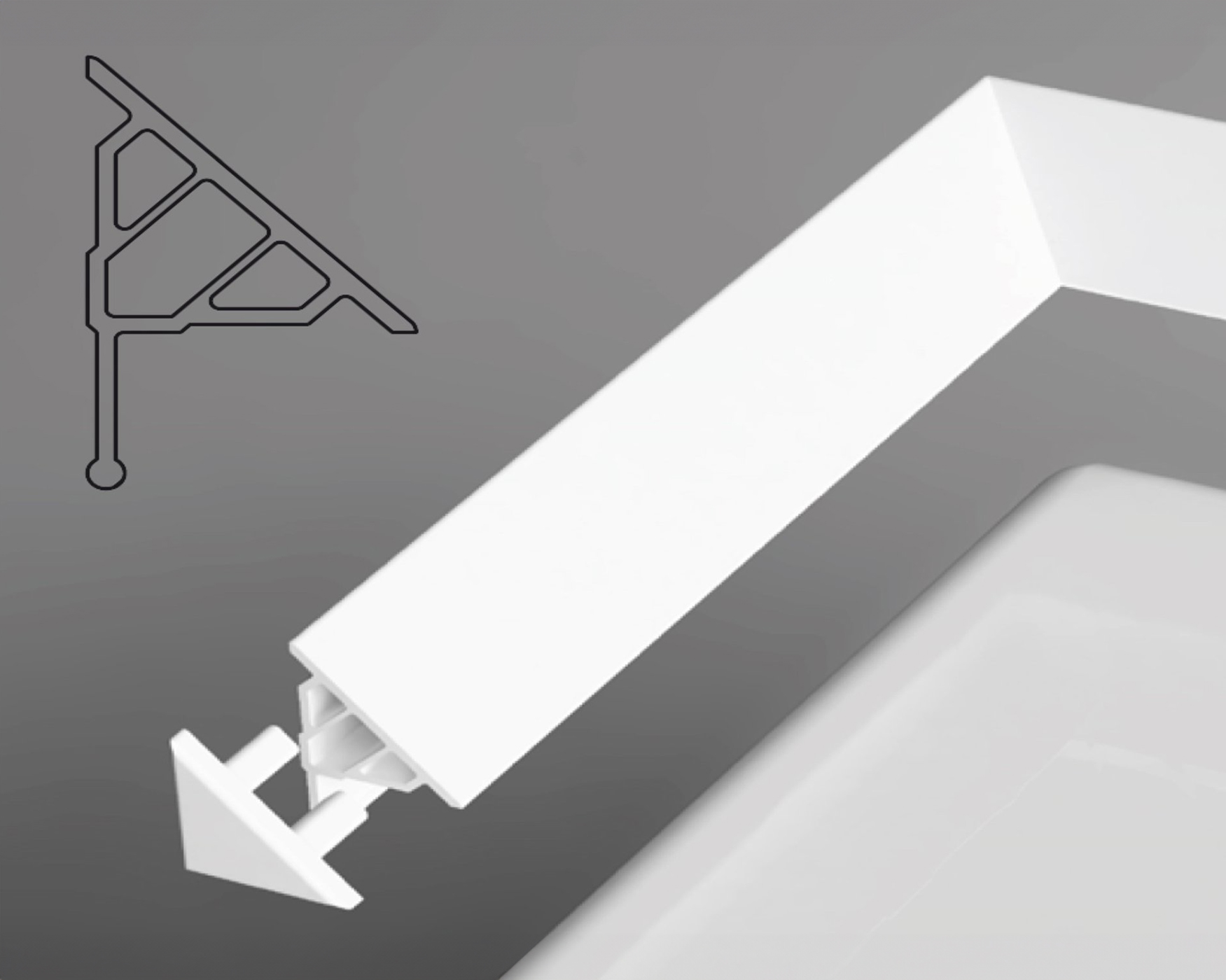 A fehér színű vízvető lécek a kád vagy a zuhanytálca és a fal közötti rés lezárásához szolgálnak.