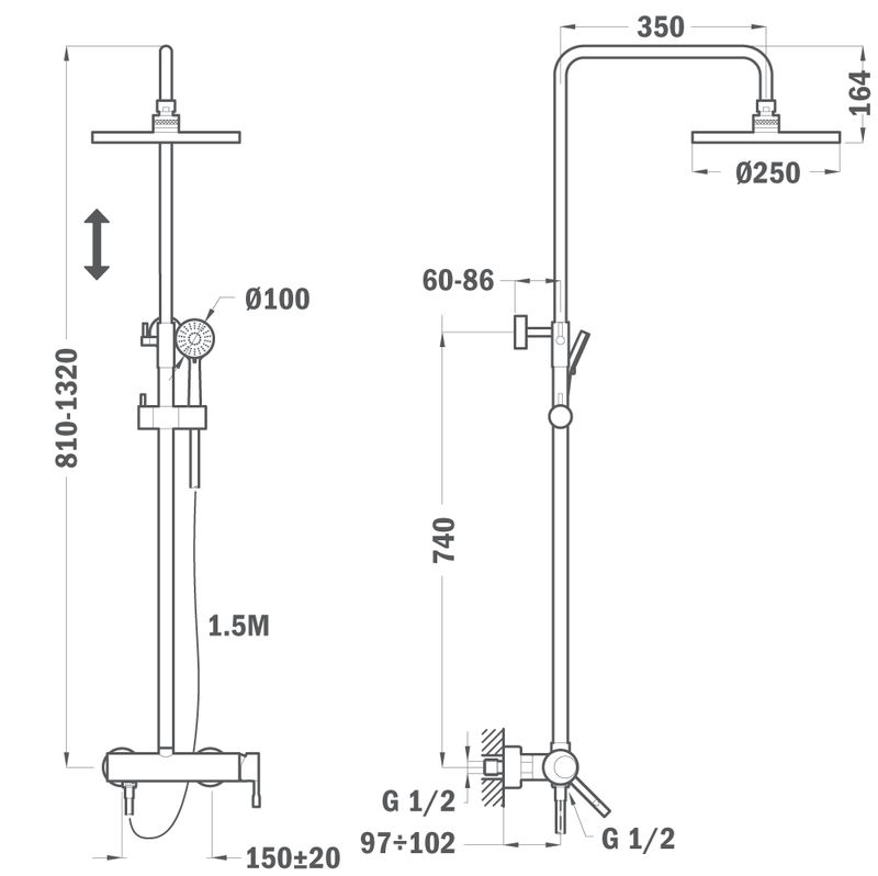 Zuhanyoszlop kerek zuhanyfejjel és kézizuhannyal.