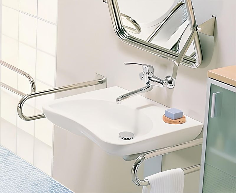 Különleges alakú elülső széle megkönnyíti a kerekesszékhez kötött felhasználók hozzáférését a mosdóhoz.