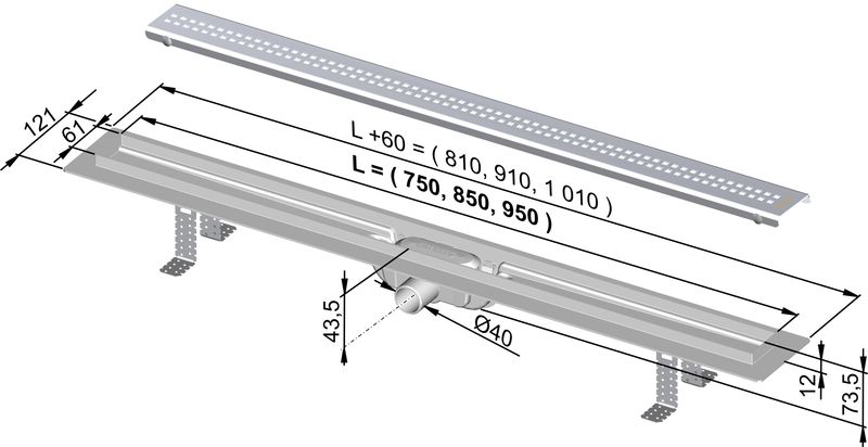 Alca APZ9/Simple műanyag zuhanyfolyóka rozsdamentes acél ráccsal (550 mm)