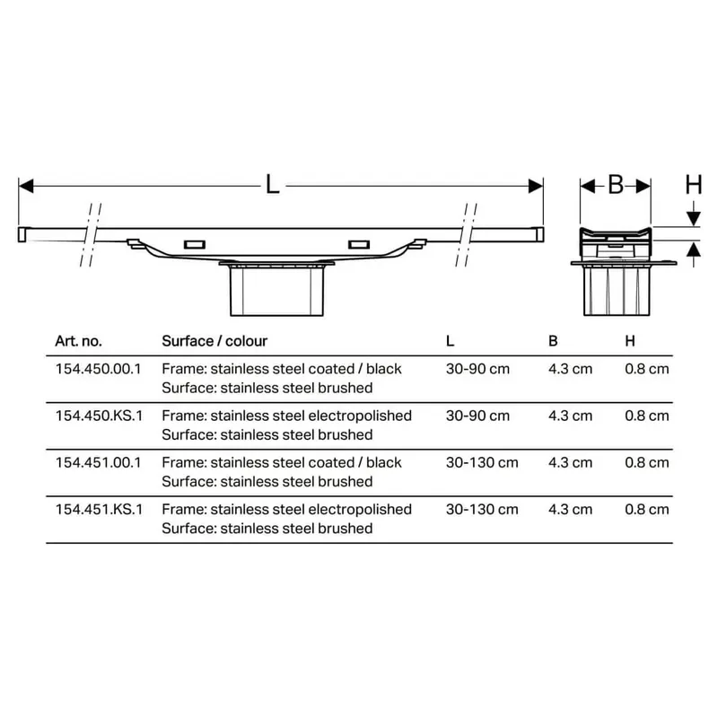 Geberit Cleanline20 zuhanyfolyóka 30-90 cm hosszú,