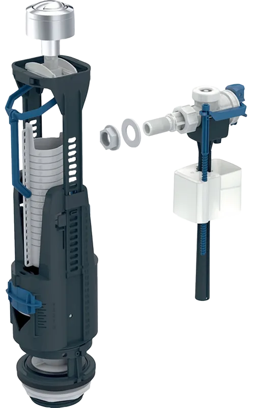 Tulajdonságok: 2 mennyiséges öblítés Beállítható vízszint Sárgaréz menetes nipli Állítható magasságú Az öblítőtartály vízmennyiségétől függően kis és nagy öblítővíz mennyiség állítható be Lerövidíthető túlfolyócső Oldalsó vízcsatlakozás Fedélrögzítővel