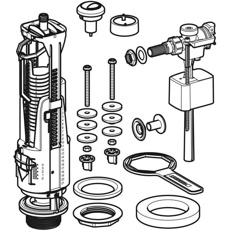 Geberit 240-333 típusú öblítő és töltőszelep, 2 mennyiséges öblítés, oldalsó vízcsatlakozás