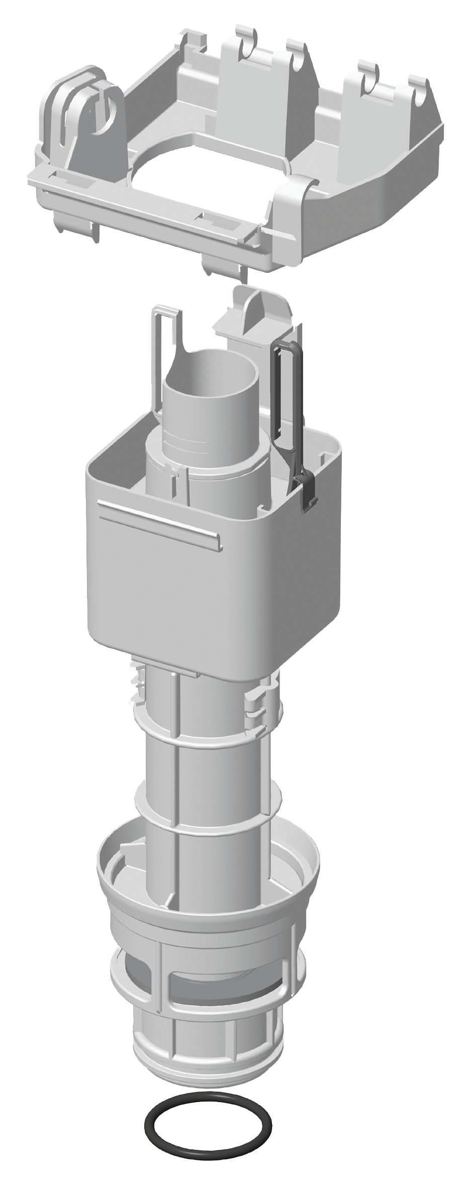 Kettős öblítő szelep szilikon tömítéssel, híd és öblítő szelep kehely O-gyűrűs.