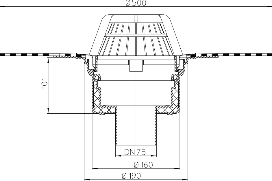 Tetőlefolyó DN75 szigetelőkarimával, szorítóele mmel,