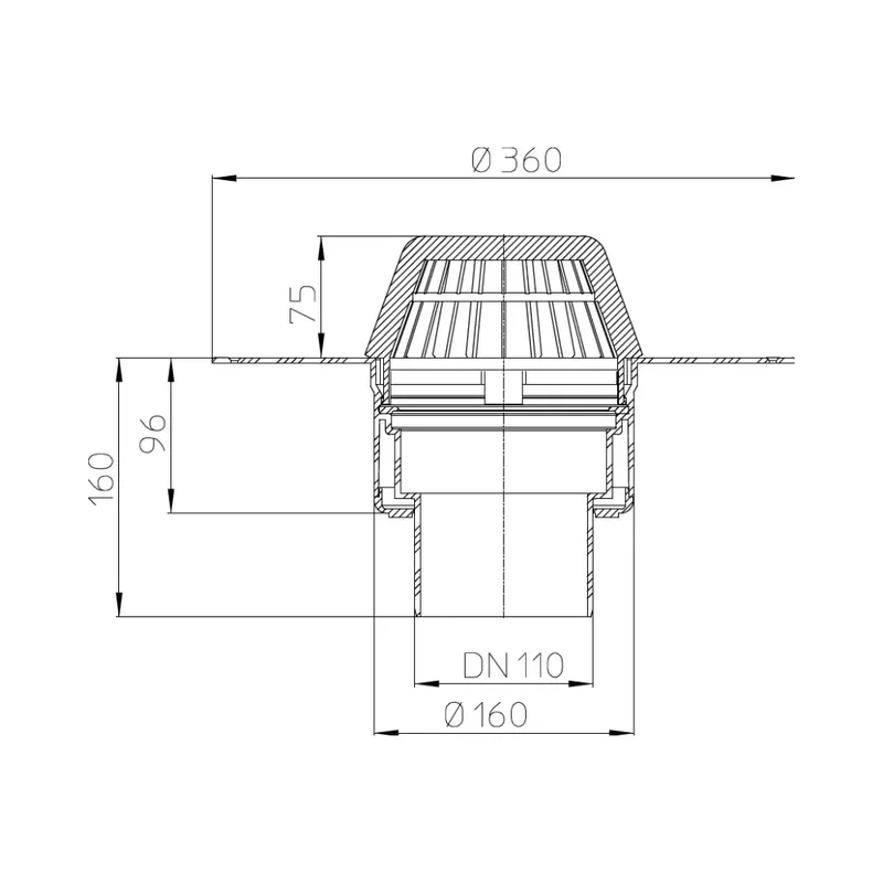 HL62P/1 Lapostető lefolyó DN110, PVC karimával