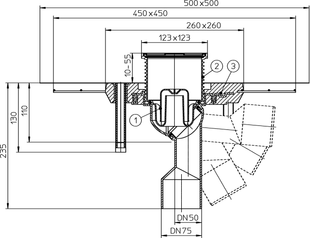 HL80.3 Tetőlefolyó DN50/75 elfordítható kimenettel, szigetelő karimával, lombkosárral