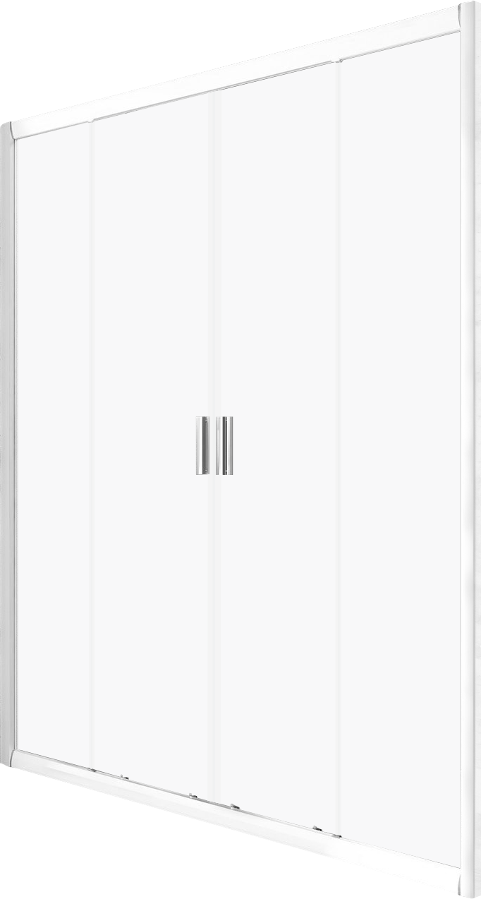 Négyrészes Blix zuhanyajtó fehér kivitelben, átlátszó biztonsági üveggel és RAVAK AntiCalc® vízlepergető réteggel. Tolóajtós rendszer.