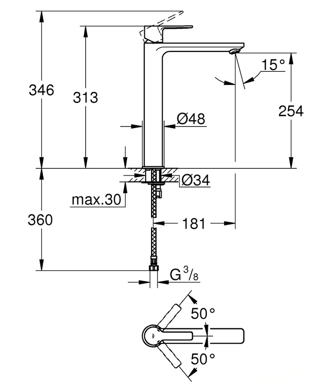 Grohe Lineare XL egykaros, magasított mosdó csaptelep, leeresztő
