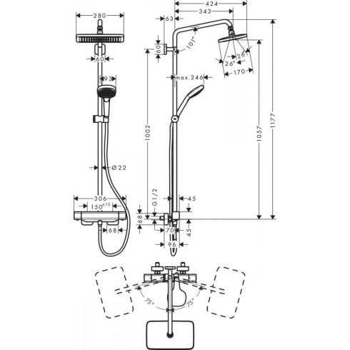 Hansgrohe Croma E Showerpipe 280 1jet termosztátos zuhanyrendszer