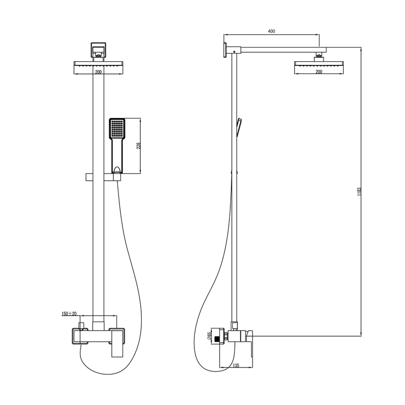Zuhanyoszlop: csapteleppel és zuhanyszettel