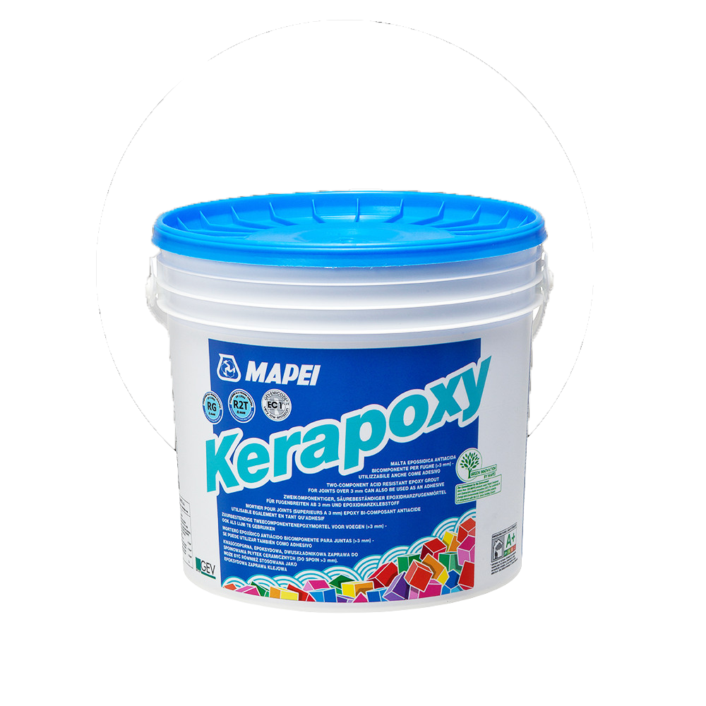 A KERAPOXY egy kétkomponensű saválló, fokozott terhelhetőségű epoxi fugázóhabarcs kerámia burkolólapokhoz és kőanyagokhoz legalább 1 mm széles fugahézagokhoz. Ragasztóként is használható.