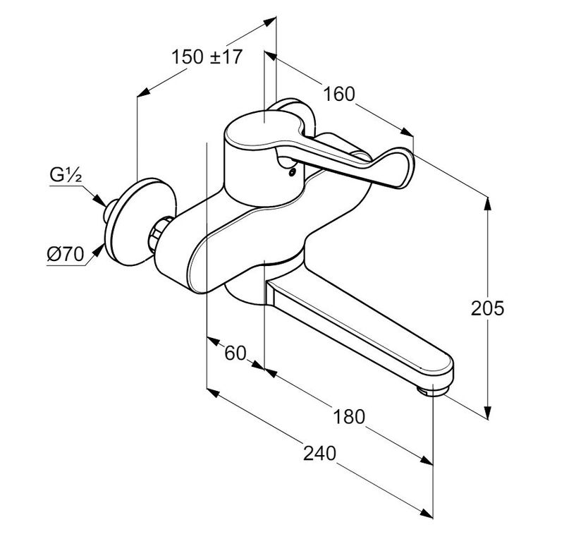 Kludi Medi Care orvosi egykaros fali mosdó csaptelep, króm