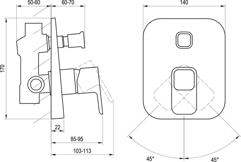 Ravak 10° falba süllyesztett csaptelep váltóval, belső egységgel TD061.00