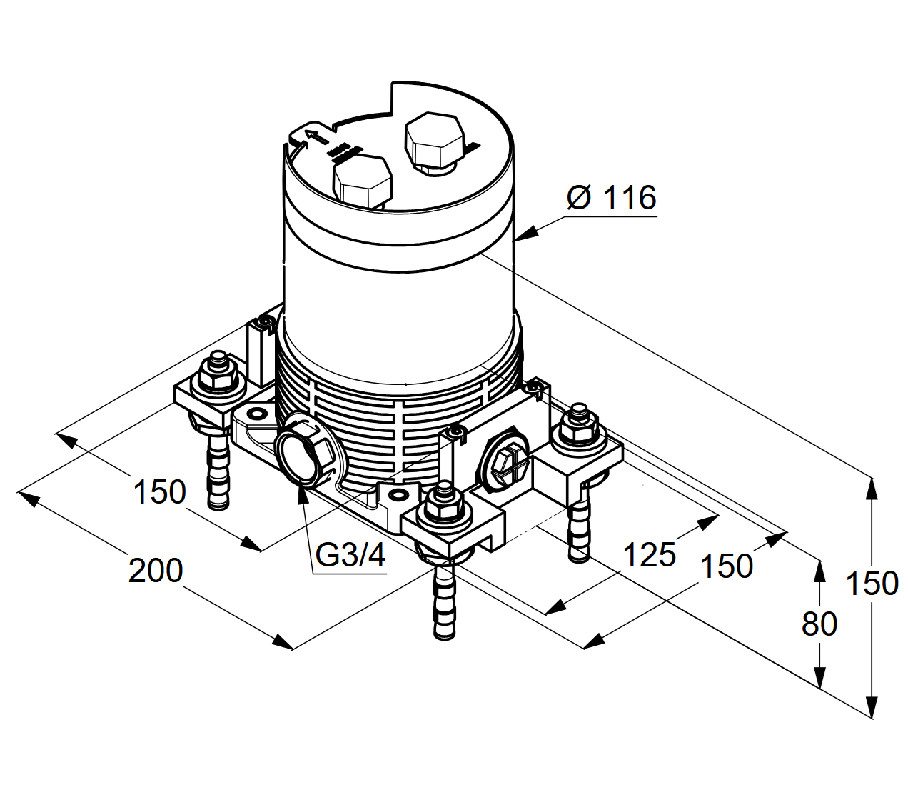 KLUDI FLEXX.BOXX falsík alatti csaptest, falon kívüli részek nélkül.
