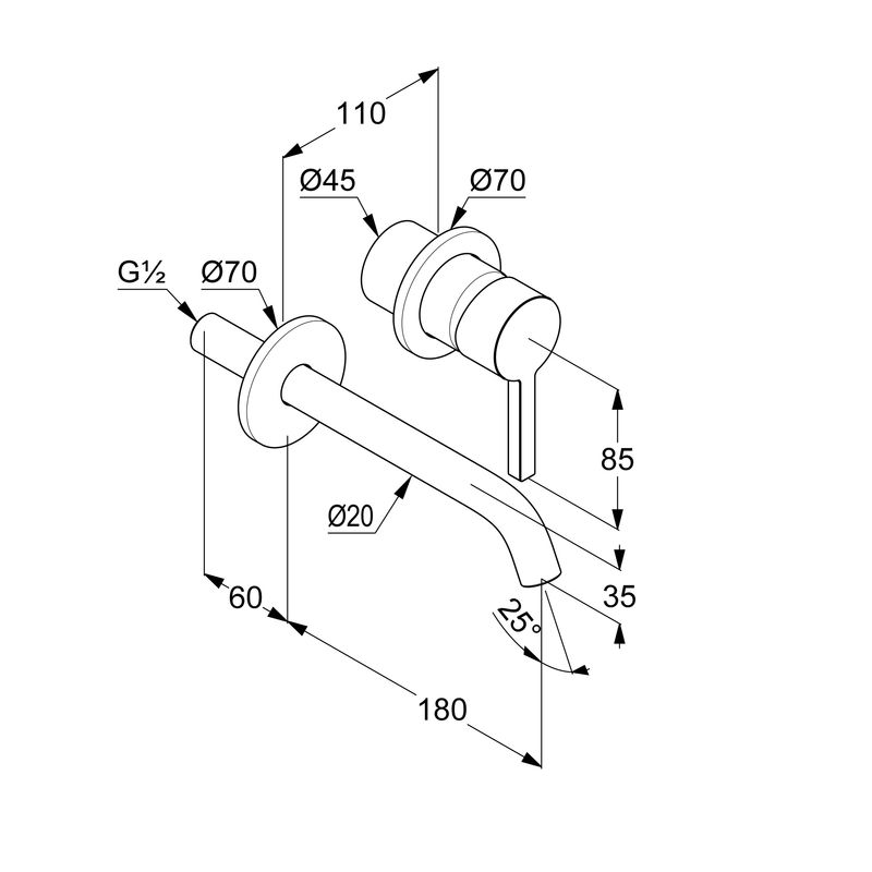fali kifolyó benyúlása: 180 mm