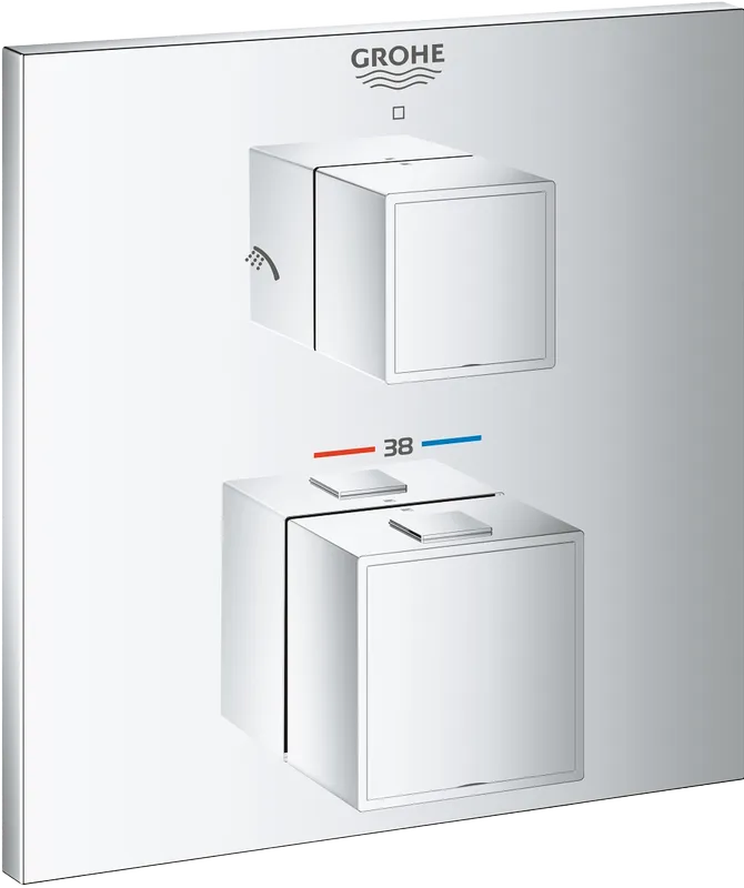 Grohtherm Cube Termosztátos zuhany keverő 2 kimenethez, beépített elzáró/váltó szeleppel