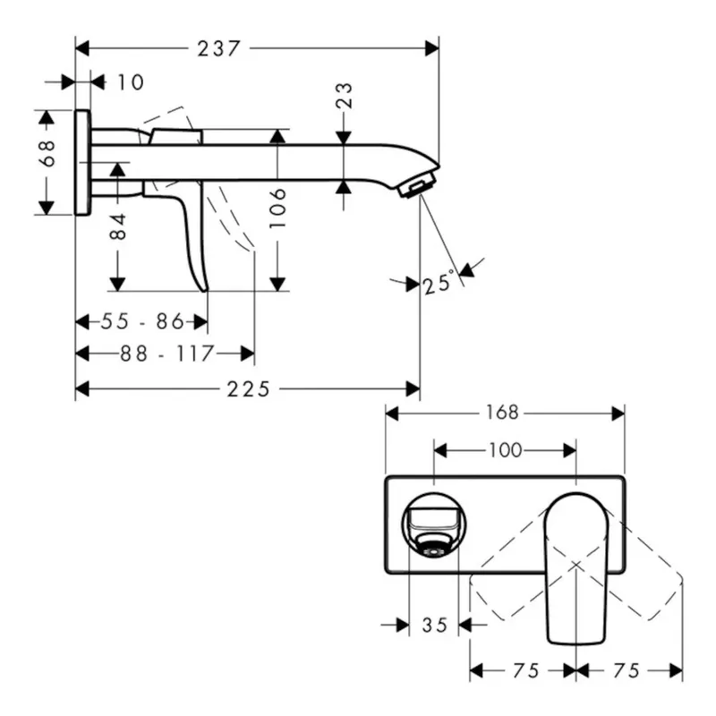 Metris Egykaros mosdócsaptelep falsík alatti szereléshez, 22,5 cm-es kifolyóval, fali szereléshez