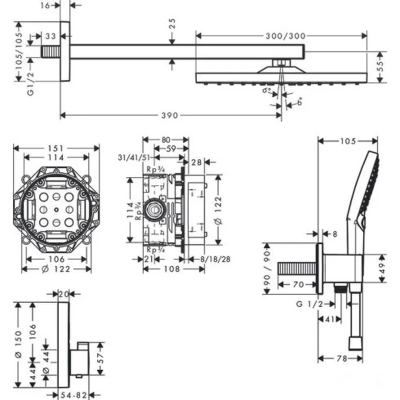 Raindance E Zuhanyrendszer 300, 1 jet, és ShowerSelect Square