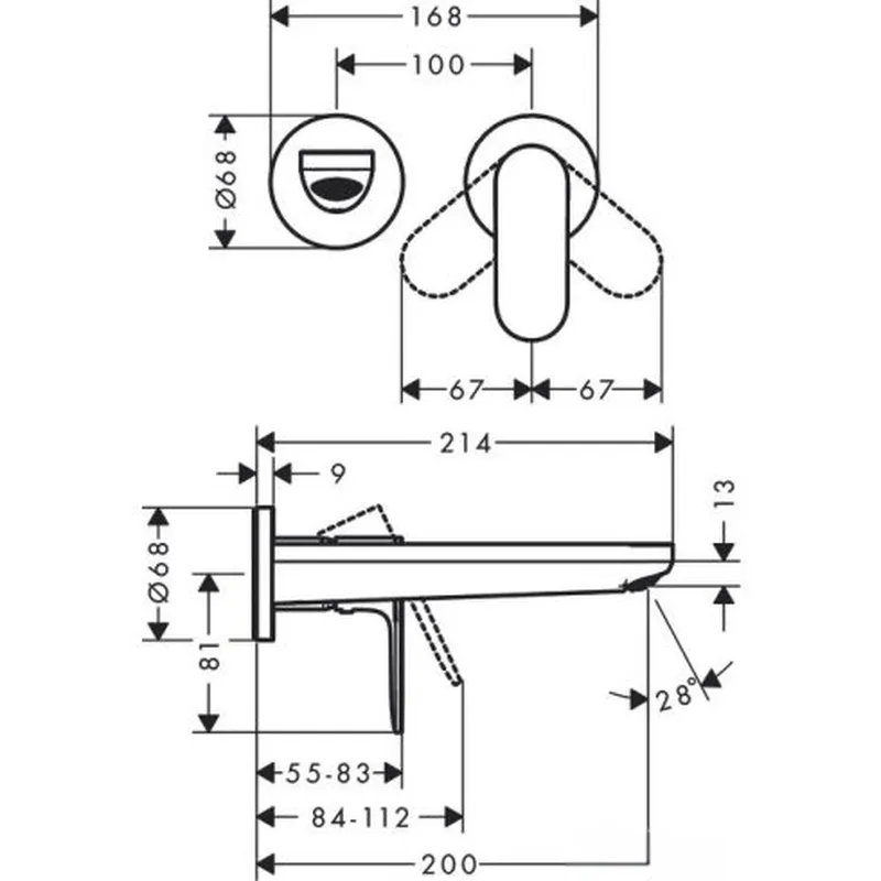 Hansgrohe Rebris S egykaros fali mosdócsaptelep, 20cm-es kifolyóval, króm