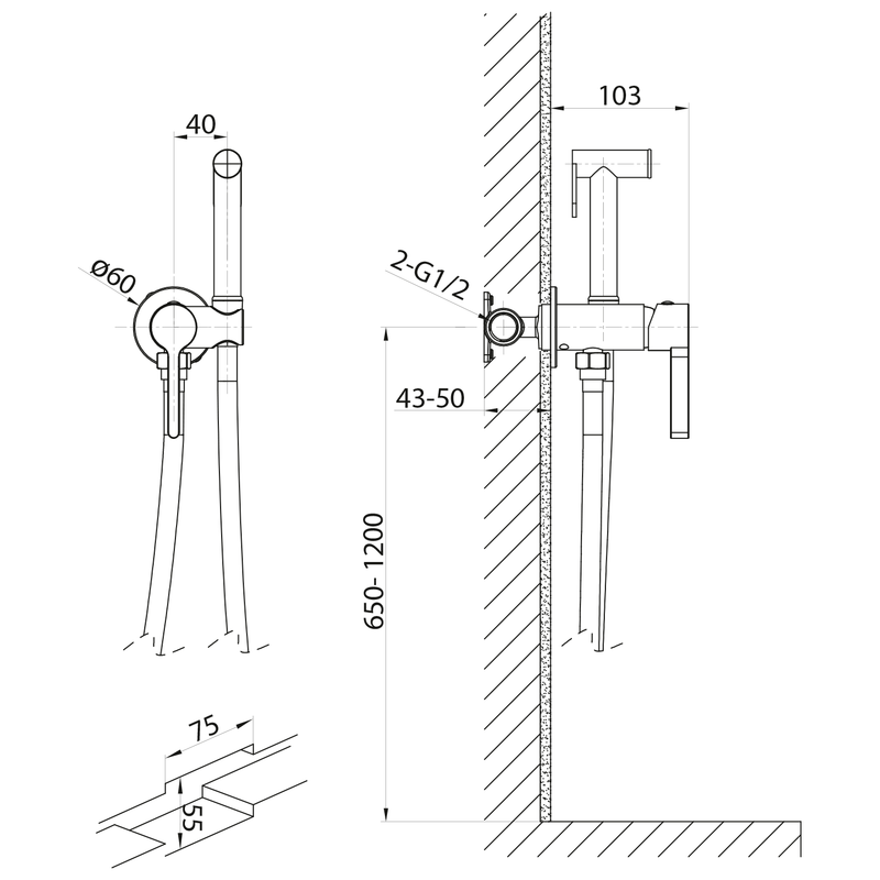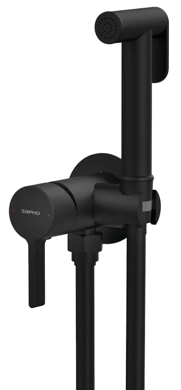 Sapho Iconic falbasüllyesztett csaptelep bidézuhannyal, matt fekete