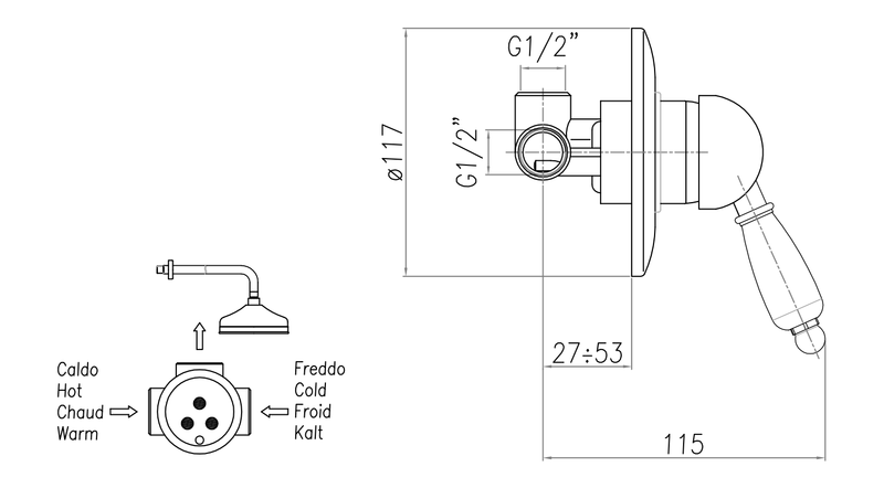 Sapho Kirké falba süllyesztett zuhanycsaptelep, 1 irányú váltóval, bronz