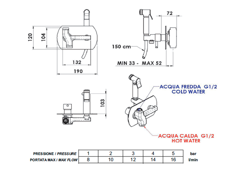 Bidé kézizuhannyal és gégecsővel