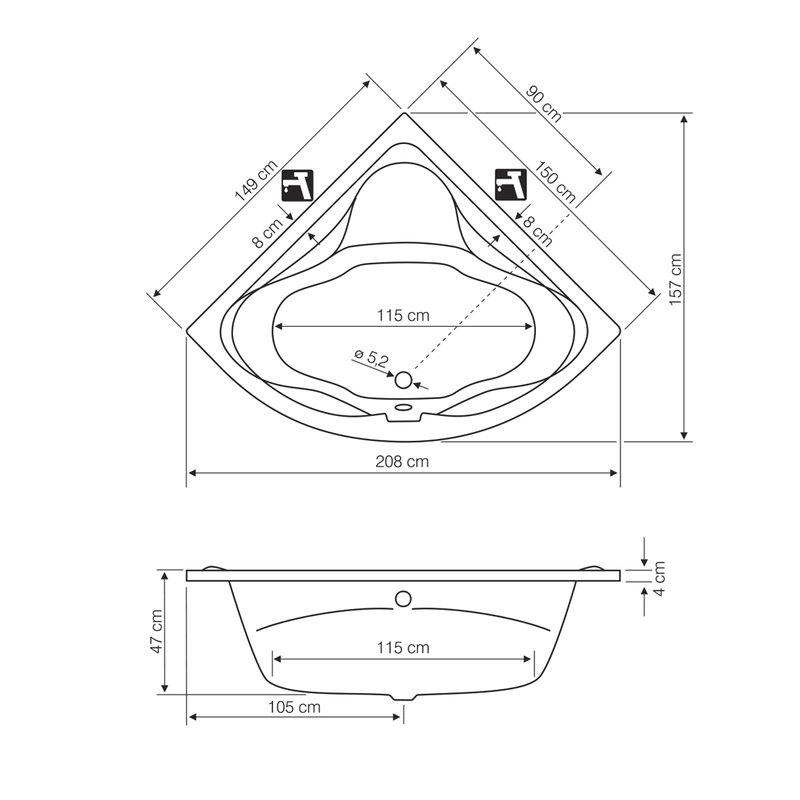 A támasztólábakat külön kell megrendelni. A népszerű DUNAJ kádak új generációja ergonomikusabb formával - süllyesztett lefolyásszabályozás. A DUNAJ sarokszimmetrikus kád egy tágas és viszonylag mély modell, amelyet nagyobb fürdőszobákhoz terveztek.