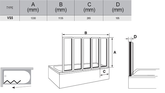 Ravak VS5 113,5 kádparaván fehér-rain