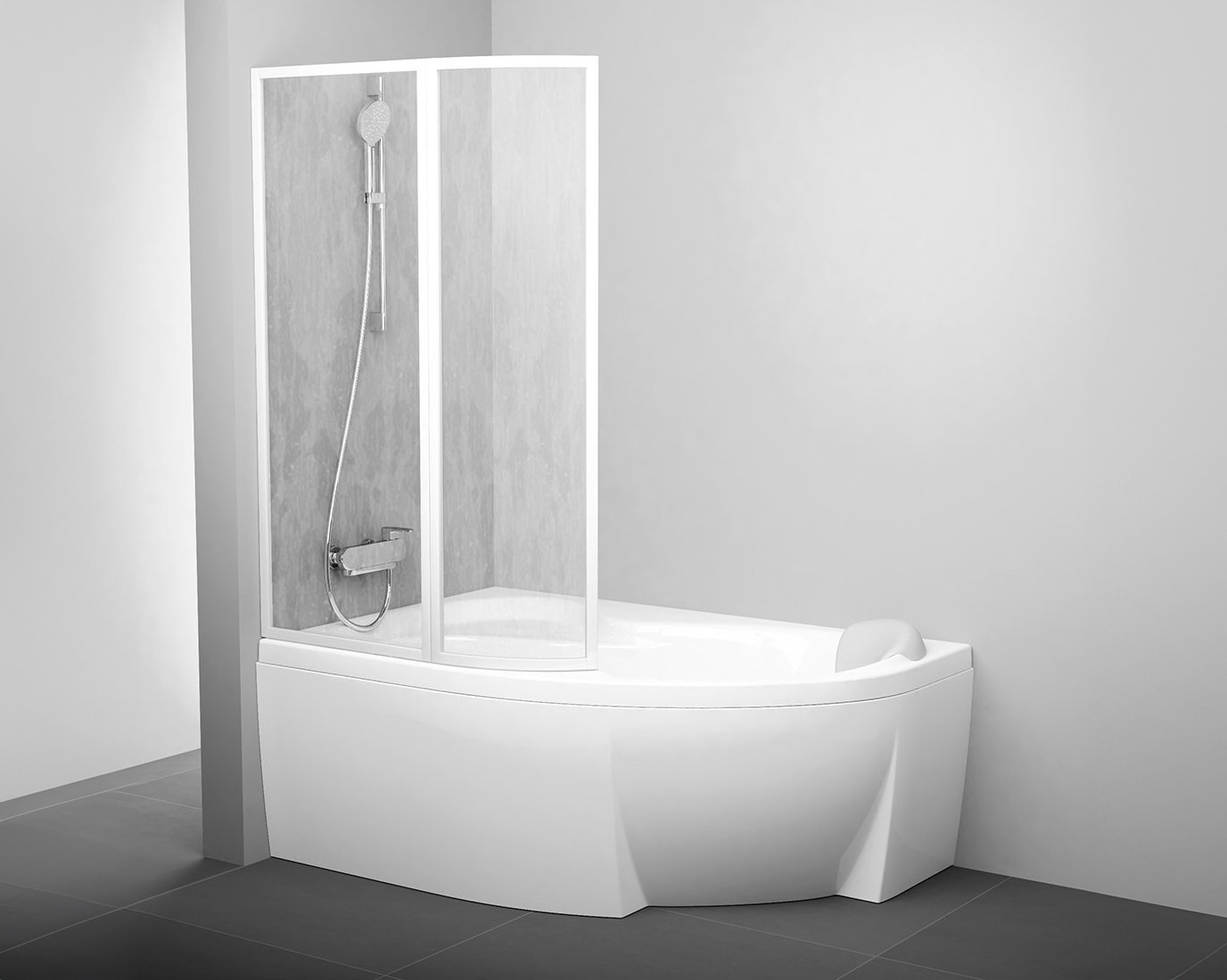kényelmesen tágas helyet biztosít a zuhanyozáshoz. A kád belső terébe hajtható, ezáltal kellően biztonságos a kádba való belépés.