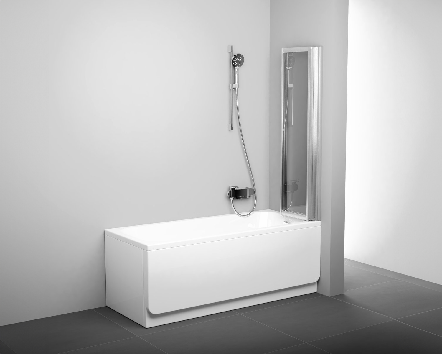 Három mozgatható elemből áll, amelyet teljesen a kád belső terébe lehet hajtani. Kitűnően illeszkedik a BeHappy II kád aszimmetrikus vonalaihoz, ezáltal még a kisebb fürdőszobákban is kényelmes zuhanyozást biztosít.