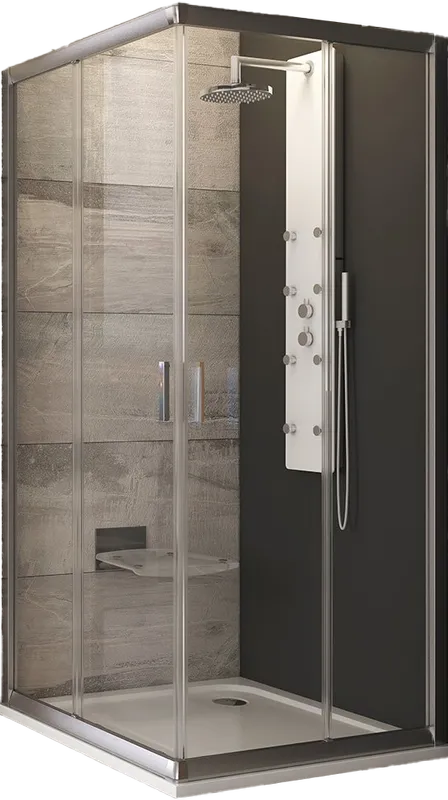 Kényelmes és stabil négyzet alapú zuhanykabin, nagy méretű sarokbelépővel. A méretek kombinációja nem lehetséges.