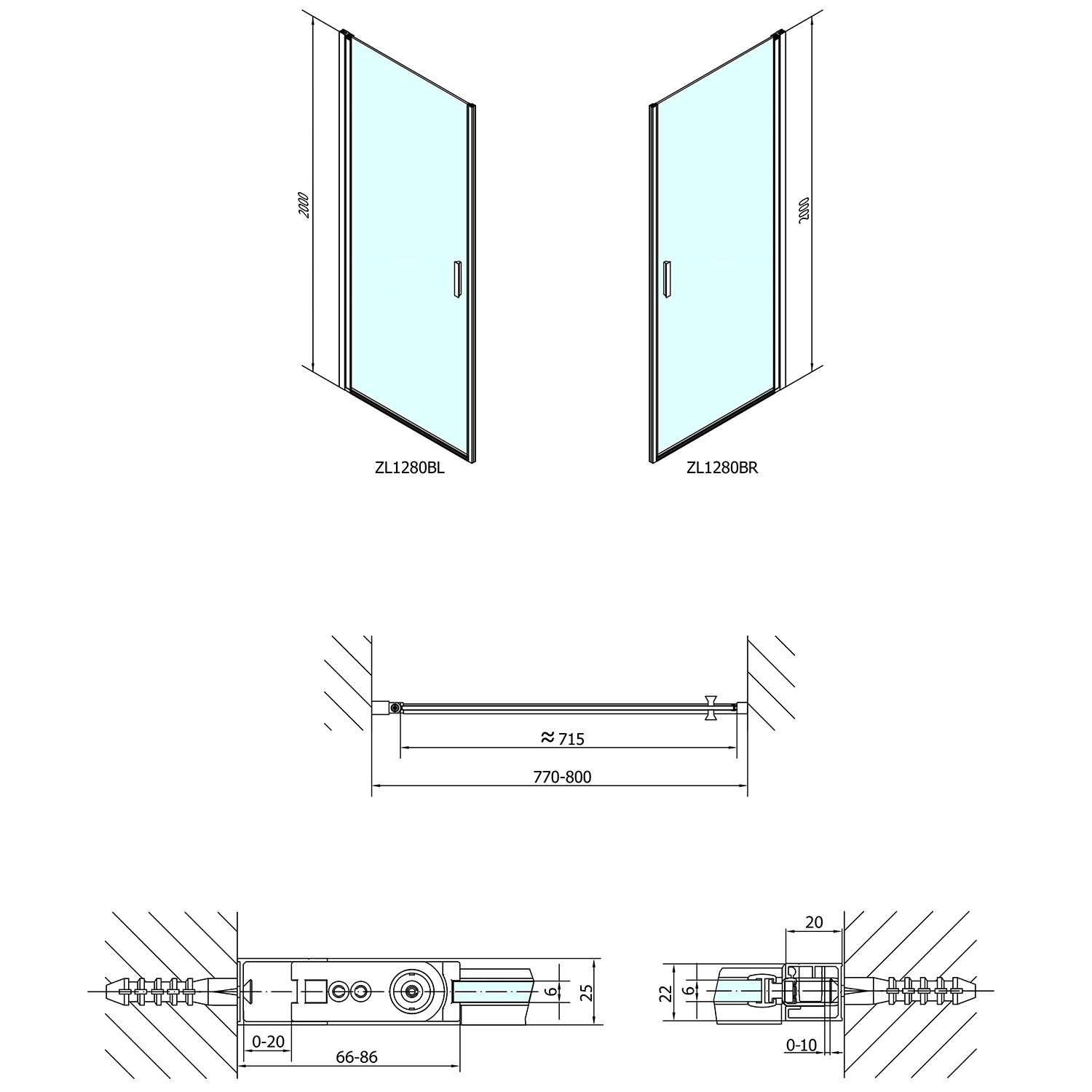 Sapho Zoom Line zuhanyajtó 800mm, transzparent üveg, fekete