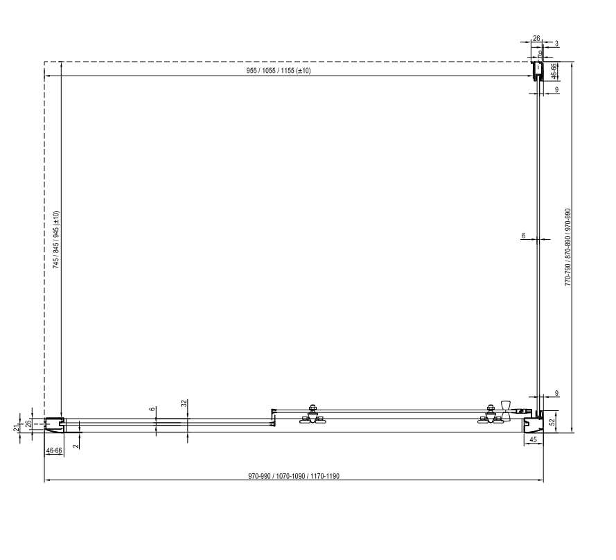 Két BLPS fix fal és zuhanyajtó kombinációjával "U" alakú zuhanyzót hozhat létre. A BLNPS toldóprofil használatával a terméket 20 mm-rel szélesítheti.