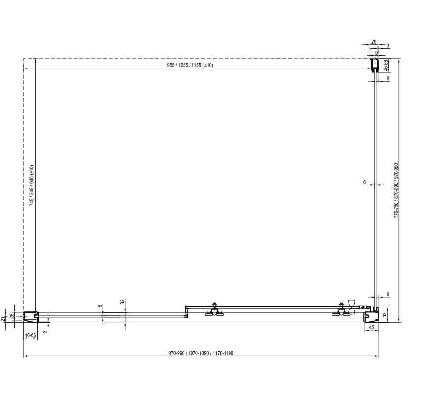 beépített zuhanyfolyókával, padlóösszefolyóval. A fix fal önállóan nem használható.
