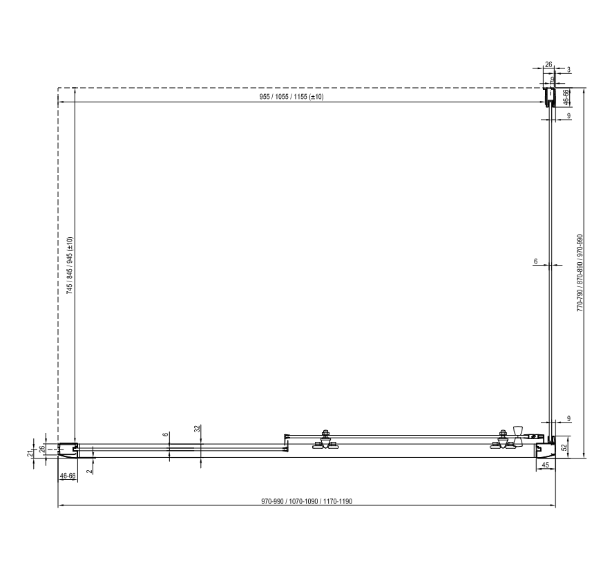 Két BLPS fix fal és zuhanyajtó kombinációjával "U" alakú zuhanyzót hozhat létre. A BLNPS toldóprofil használatával a terméket 20 mm-rel szélesítheti.