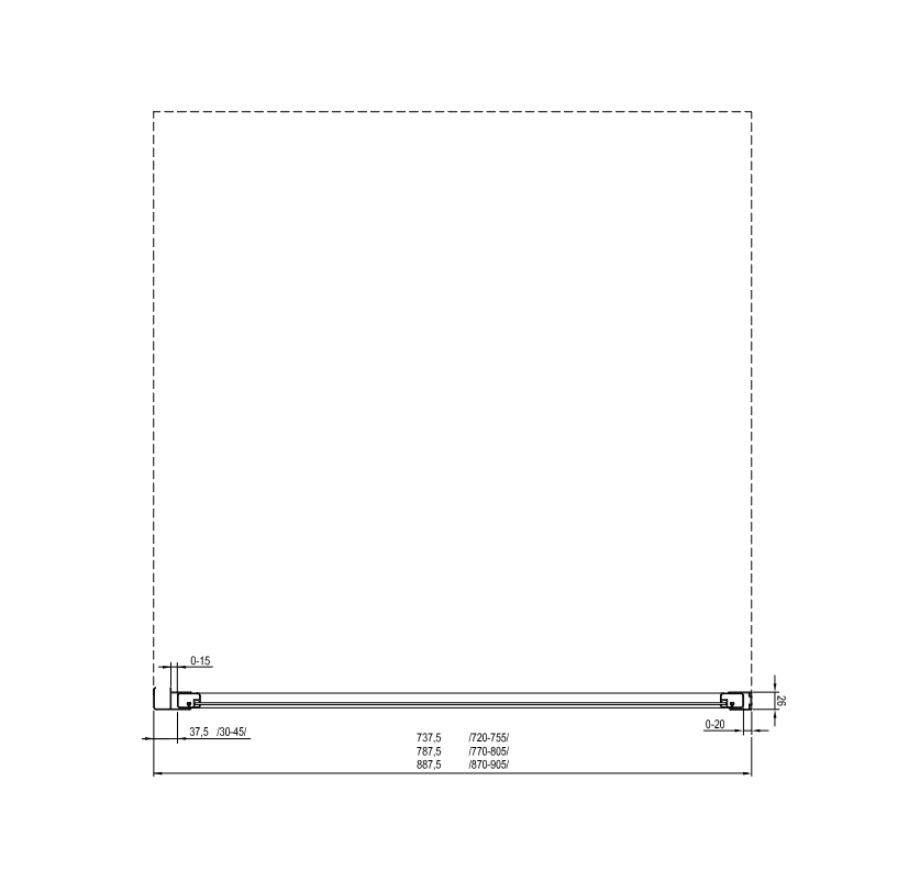 A falra történő rögzítéshez használjon beállító profilt, amelyet a zuhanyajtó vagy fülke csomagja tartalmaz. Az építési nyílás esetleges egyenetlenségeit NPS beállító profilokkal lehet kompenzálni.