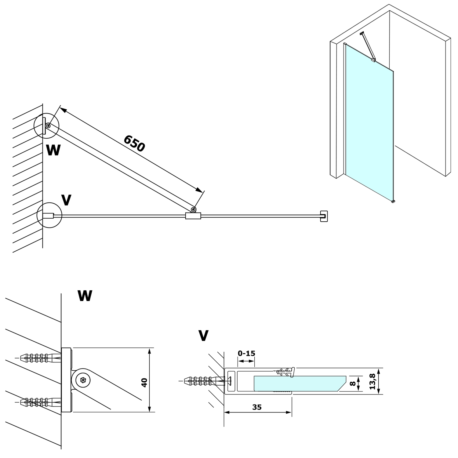 Sapho Vario Walk-In sarok merevítő 650mm, króm