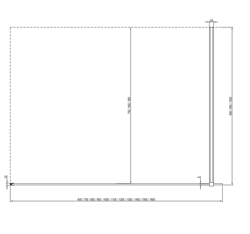 A Walk-In Wall termékek a elérhető 60 - 160cm szélességeben, amelyekből folyamatosan raktárkészletet tartunk,
