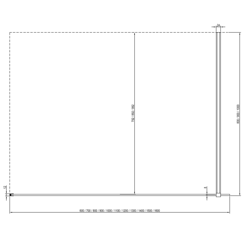 A Walk-In Wall termékek a elérhető 60 - 160cm szélességeben,