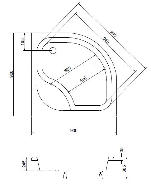 Besco Diper I 90x90 cm-es magasított negyedköríves zuhanytálca