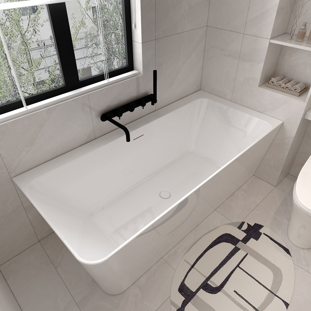 Ez a fal mellé, sarokba helyezhető szabadonálló kád nemcsak letisztult megjelenésével hódít, hanem funkcionális kialakításával is.