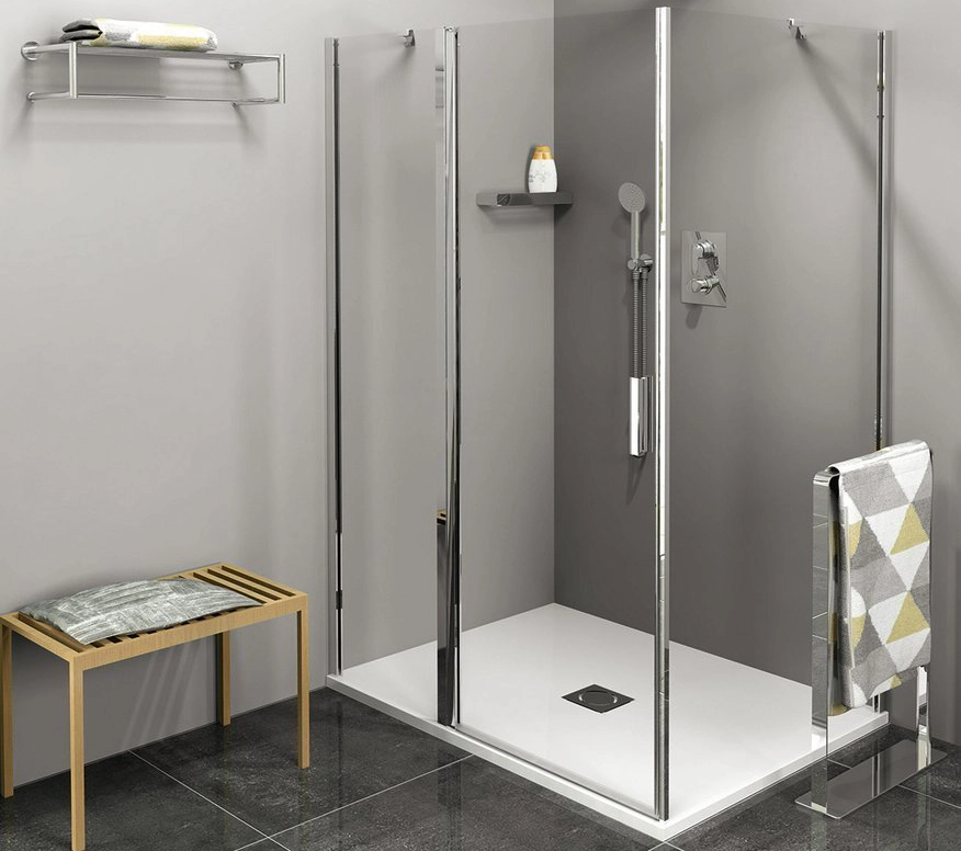 Az emelőszerkezettel ellátott, négyzet alakú forgóprofilokkal ellátott zuhanyajtók könnyű nyitást tesznek lehetővé kívül-belül, és maximális belépési szélességet garantálnak.
