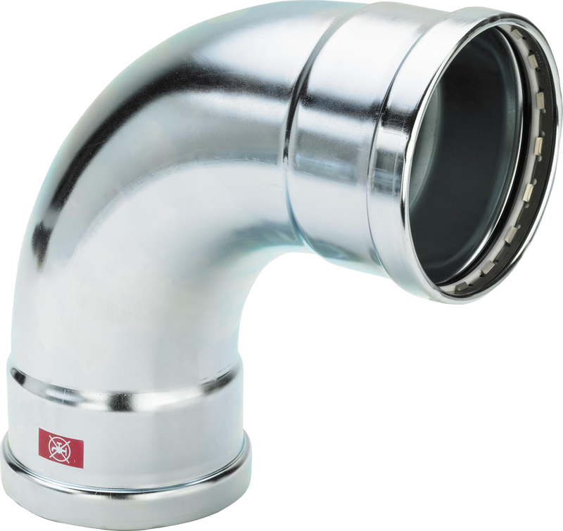 Áramlásoptimalizált présidomrendszer ötvözetlen, 1.0308 anyagszámú acélból készült présidomokkal. Kívül galvanikusan horganyzott (kék kromátozott). A présidomok a tömítőelem védelme érdekében hengeres csőbevezető toldattal vannak ellátva. A présidomok d64,0 mérettől nemesacél vágógyűrűvel rendelkeznek a kötés mechanikus terhelhetőségének biztosításához. A csővégek védelem céljából dugókkal vannak lezárva. A préselés a tömítőelem előtt és mögött is megtörténik (kettős préselés). Felszállóvezetékek és szinti leágazások vakolat elé és alá történő szereléséhez alkalmas.